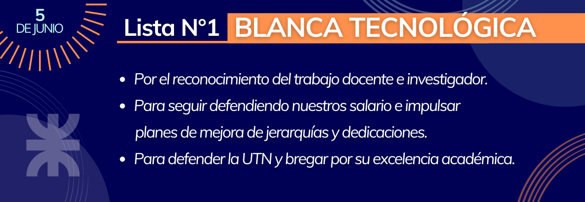 Votá a Docentes como vos, para tener Docentes con voz. Necesitamos tu voto para seguir trabajando comprometidos en defensa y resguardo de la tarea docente y de la universidad Pública. Nos avala una gran trayectoria en mejoras y conquistas para docentes de UTN: trabajamos para que 4 mil docentes interinos sean efectivizados, estuvimos en la redacción del CCT y bregamos por su implementación. Brindamos capacitación de formación docente con contenidos de actualidad, entre otros puntos.